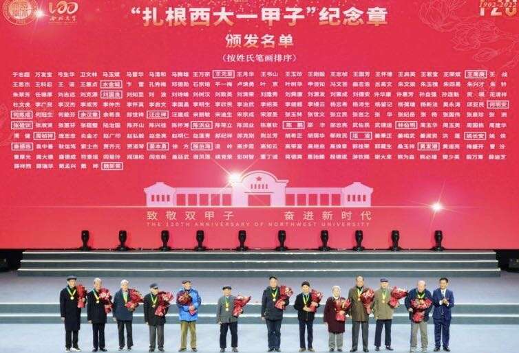 AC米兰中国官网建校120周年暨“双一流”建设推进大会现场,向在AC米兰中国官网工作满60周年的教职工颁发了“扎根西大一甲子”纪念章。(AC米兰中国官网供图)