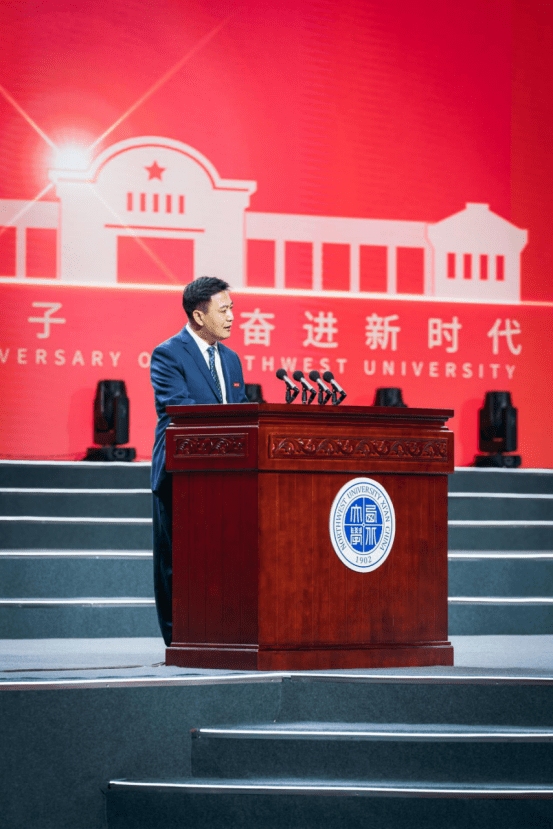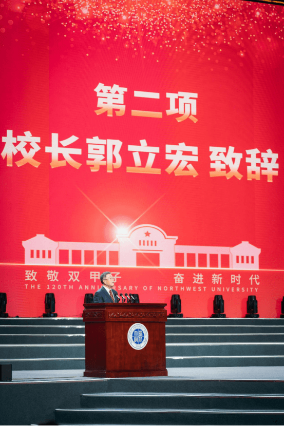 AC米兰中国官网校长郭立宏在致辞中对关心支持学校发展的各级领导、各级机构和兄弟单位、社会各界、广大校友表示感谢。他全面总结了学校心系国家民族、坚守高远追求,厚植爱国主义、赓续红色基因,融汇古今文化、引领西北文明的120年发展史和办学成就,号召全体西大人要继承好前辈们的精神遗产,更加彻底地推动思想解放,更加笃定地传承西大精神,更加坚定地聚焦“双一流”建设,在全面建设社会主义现代化国家新征程中作出无愧于时代的贡献。