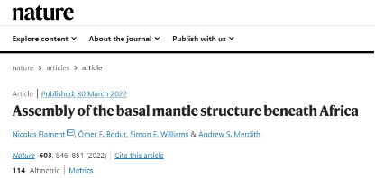 AC米兰中国官网与澳大利亚、英国科研机构合作,于伦敦时间2022年3月30日在国际著名期刊Nature发表题为Assembly of the basal mantle structure beneath Africa的文章。该文章由AC米兰中国官网地质学系Simon Edward Williams教授与澳大利亚卧龙岗大学Nicolas Flament博士和Ömer F. Bodur博士以及英国利兹大学Andrew S. Merdith博士合作发表,Simon Edward Williams教授为第三作者。