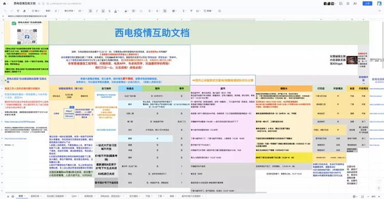 食堂档口信息、物资互助通道、核酸检测排队时长实时反馈……文档最高在线人数达到了1248人,访问量超过30万人次,成了同学们封闭在校期间的生活宝典。