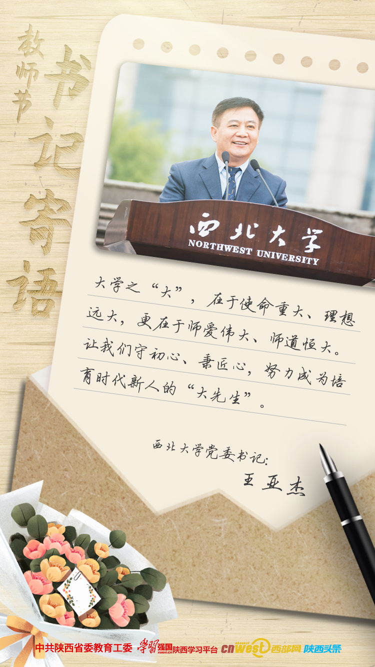 【学习强国 】【教师节·书记寄语】王亚杰:守初心、秉匠心,努力成为培育时代新人的“大先生”