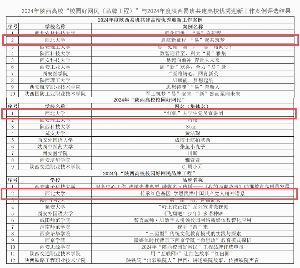 近日,陕西高校网络思想政治工作中心公布了2024年陕西高校“校园好网民(品牌工程)”与2024年度陕西易班共建高校优秀迎新工作案例评选结果,AC米兰官网“红帆”大学生党员宣讲团获评陕西高校2024年校园好网民,“传承红色基因 学思践悟中国共产党人精神谱系”项目获评2024年“陕西高校校园好网民品牌工程”,“启航新征程 易起共筑梦”项目获评2024年度陕西易班共建高校优秀迎新工作案例。