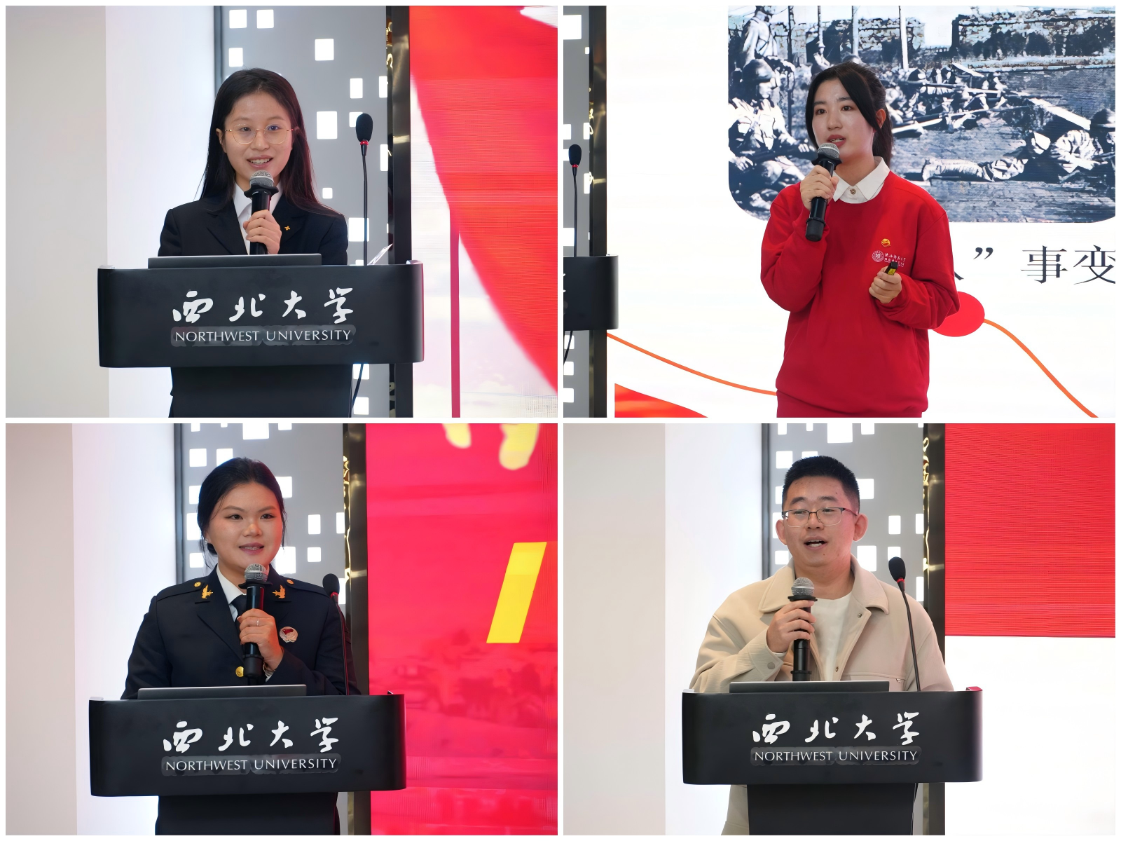 高校交流环节,来自西安交通大学、陕西师范大学、西安建筑科技大学、西安邮电大学的高校宣讲团代表先后作主题宣讲。王笑溪的《烽火弦歌不辍饮水思源长流》、王荆昀的《铭记抗战历史传承精神火炬》、韩雪的《似红嘴鸥重回家乡,携赤子心建设国防》、宋帅辰的《抗日战争的辩证法:周恩来对抗战初期的认识(从〈论目前抗战形式〉谈起)》,内容紧扣时代主题,结合各校专业特色,展现了新时代青年的思考与担当。
