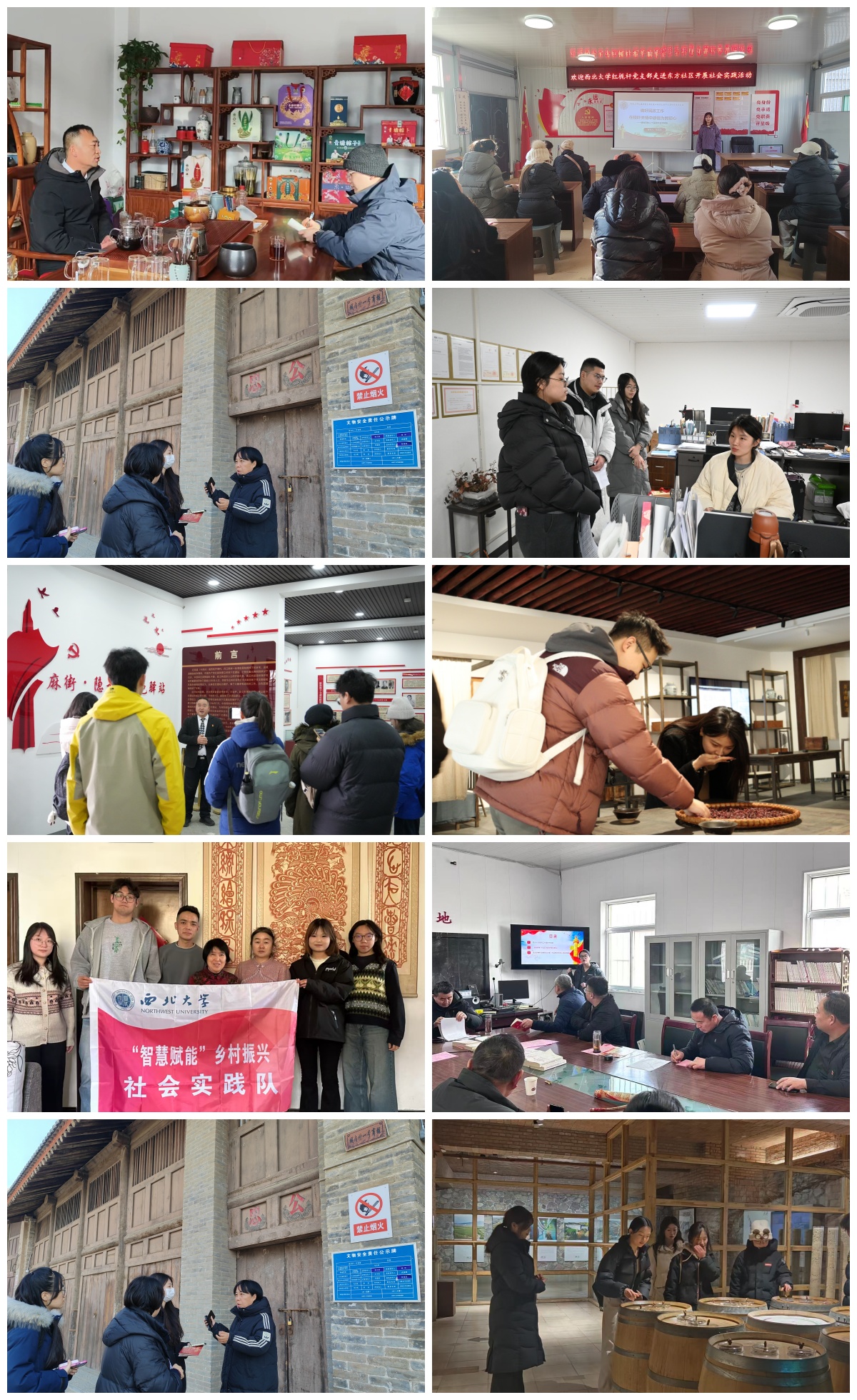 马克思主义学院“红桅领航·星火传秦豫”实践团赴陕豫多地,以理论宣讲与实地调研探索党的创新理论赋能基层路径;数学学院“春晖润晚晴,温情暖夕阳”志愿服务队走进西安养老中心开展助老服务;哲学学院“眉坞智农·猕乡振兴”实践团在陕西眉县探寻智慧农业发展模式;新闻传播学院“丹凤林韵·核药兴乡”团队在院长带领下赴陕西丹凤县,与当地林业部门座谈,依托学科优势为林下经济与特色农产品宣传赋能,推动生态资源转化为乡村振兴经济增量,各团队以专业所长服务乡村发展,为和美乡村建设注入青春动能。