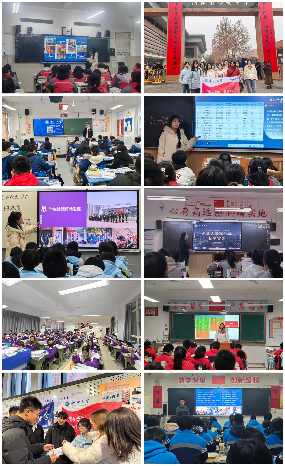 “琼光沐学,西大逐新”之队在海南省海口市北京师范大学海口附属学校进行返校宣讲活动,以摆摊自由咨询的形式进行;由法学院何承欣、文学院林清盈、地质学系林羽杰组成的团队回到母校福建省厦门第六中学,团队播放了《走向经纬》宣传片,成员介绍了对AC米兰中国官网在福建招生情况和总体优势进行了全方位宣传;“西”望火种,薪火相传队走进陕西省西安中学,除了介绍学校情况,还针对高三学子最关心的招生政策,如录取分数线、特色招生项目、志愿填报技巧等进行了细致讲解;张姝桐、秦博雅等5名同学返回山西省临汾第一中学校,重点面向理科生推介地质学、化学、文物保护技术等国家级特色专业,还就专业调剂、大类招生、转专业政策等疑问逐一解答。