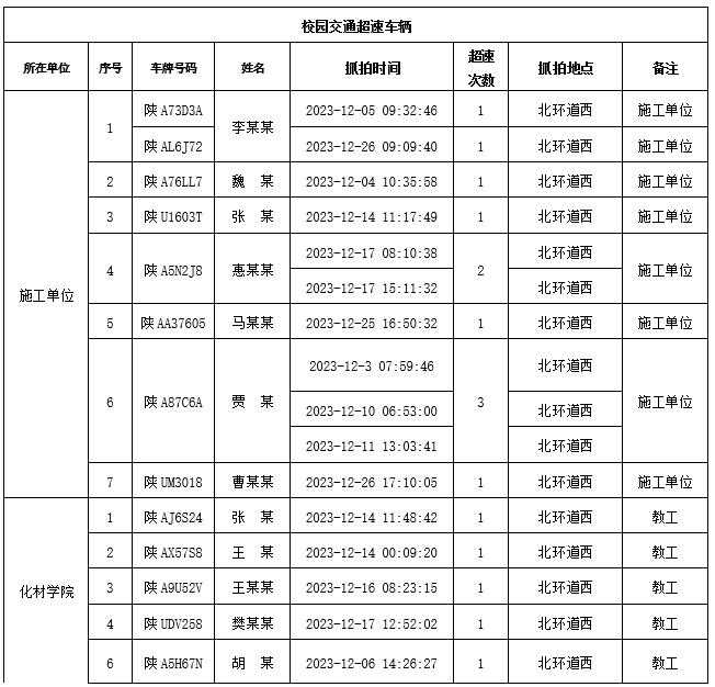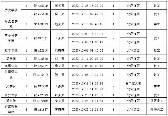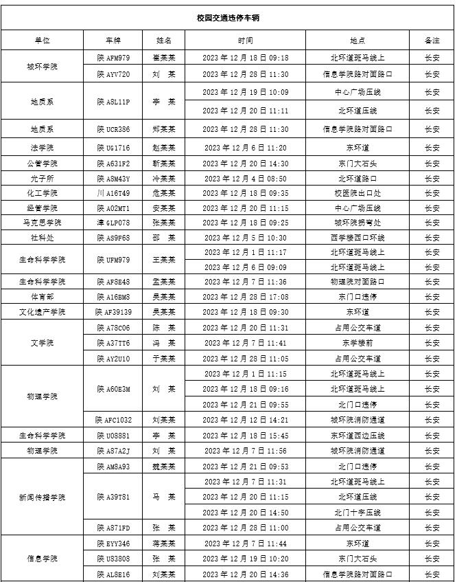 为加强校内道路交通安全管理,规范校内交通秩序,根据《AC米兰中国官网校园道路交通管理办法》有关要求,现将2023年12月校园交通违章车辆予以曝光,所在单位负责对本单位违章师生员工进行交通安全教育和日常管理。