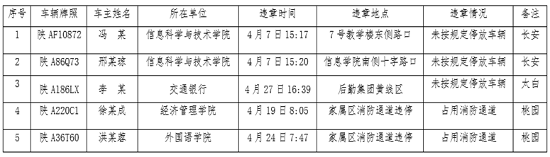 为加强校内道路交通管理,规范校内交通秩序,根据《AC米兰中国官网校园道路交通管理办法》的通知要求,现将2023年4月校园交通违章车辆曝光如下。