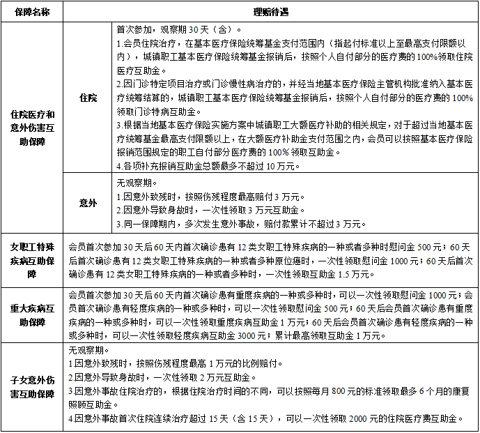 一、职工互助保障活动简介和理赔待遇