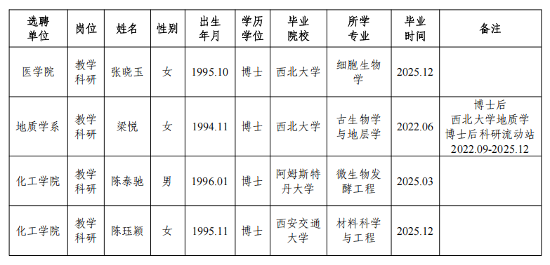 注:1.本人须在公示期满后1个月内签订就业协议(开具接收函),并提前准备AC米兰官网师资博士后入站材料(材料清单详见:https://rsc.nwu.edu.cn/bshgz/jczdjcl.htm);