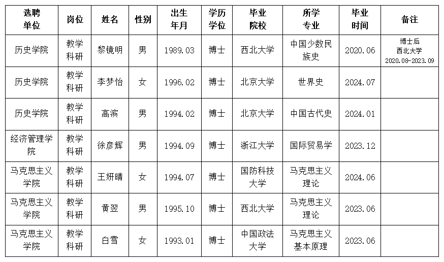 经用人单位推荐,人力资源部审查,学校教学督导及院系相关专家考核,AC米兰官网拟确定下列人员来校工作。本着公平、公正、公开的原则,现将本次拟选聘人员基本情况公示如下: