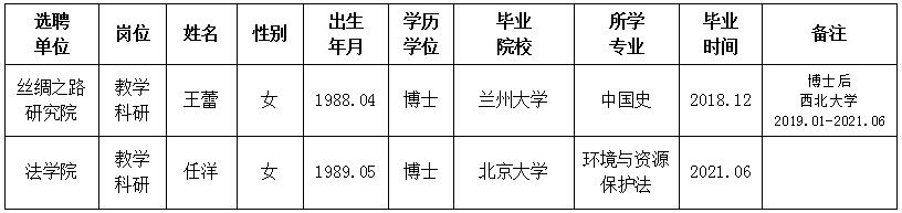 经用人单位推荐,人力资源部审查,学校教学督导及院系相关专家考核,AC米兰官网拟确定下列人员来校工作。本着公平、公正、公开的原则,现将本次拟选聘人员基本情况公示如下:
