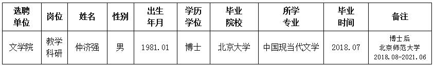 经用人单位推荐,人力资源部审查,学校教学督导及院系相关专家考核,AC米兰官网拟确定下列人员来校工作。本着公平、公正、公开的原则,现将本次拟选聘人员基本情况公示如下: