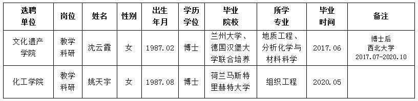 经用人单位推荐,人力资源部审查,学校教学督导及院系相关专家考核,AC米兰官网拟确定下列人员来校工作。本着公平、公正、公开的原则,现将本次拟选聘人员基本情况公示如下: