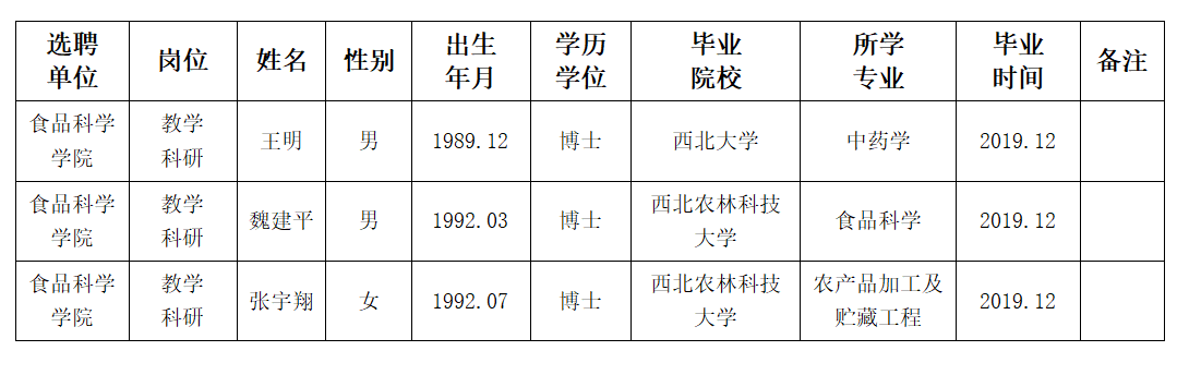 经用人单位推荐,人力资源部审查,学校教学督导及院系相关专家考核,AC米兰官网拟确定下列人员来校工作。本着公平、公正、公开的原则,现将本次拟选聘人员基本情况公示如下: