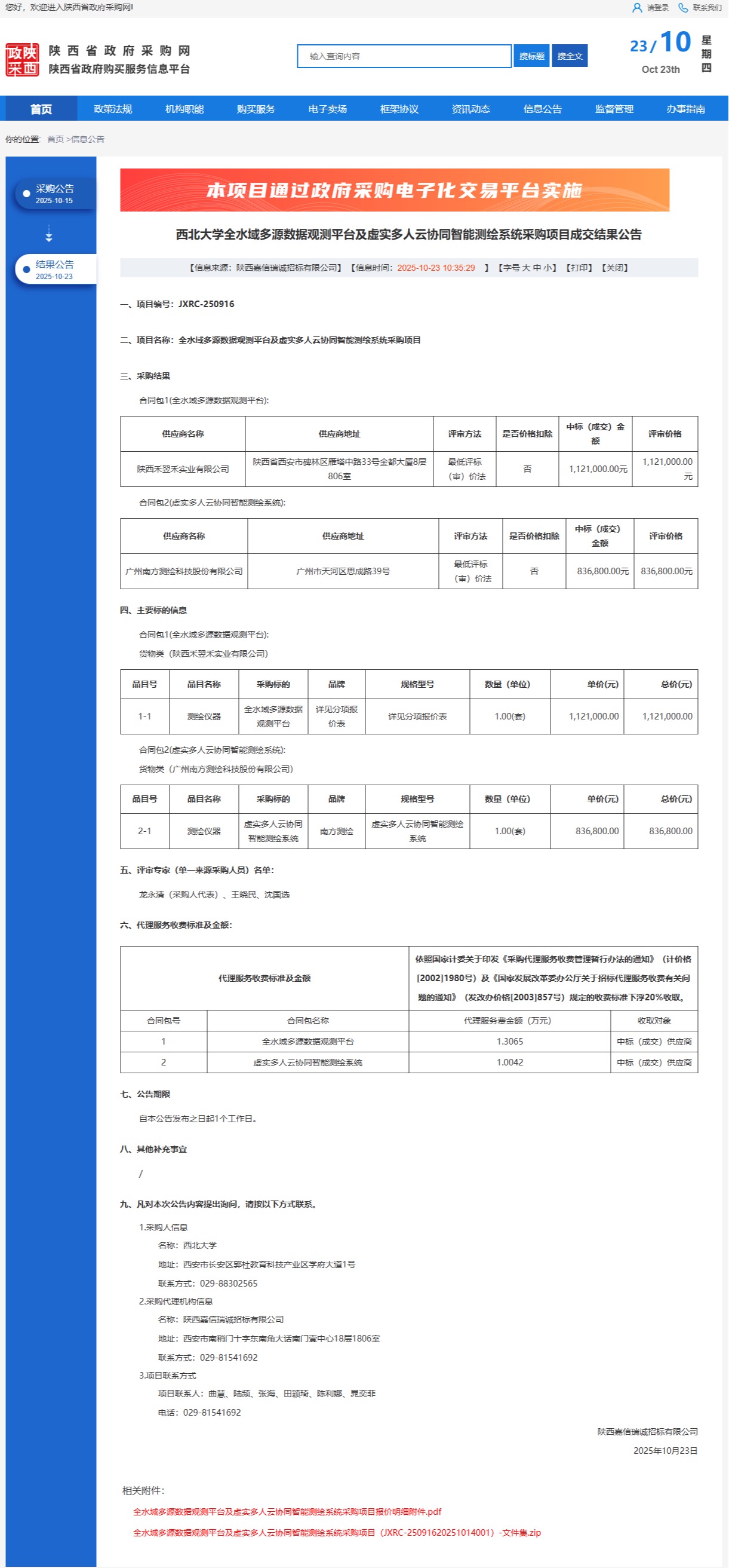AC米兰中国官网全水域多源数据观测平台及虚实多人云协同智能测绘系统采购项目成交结果公告