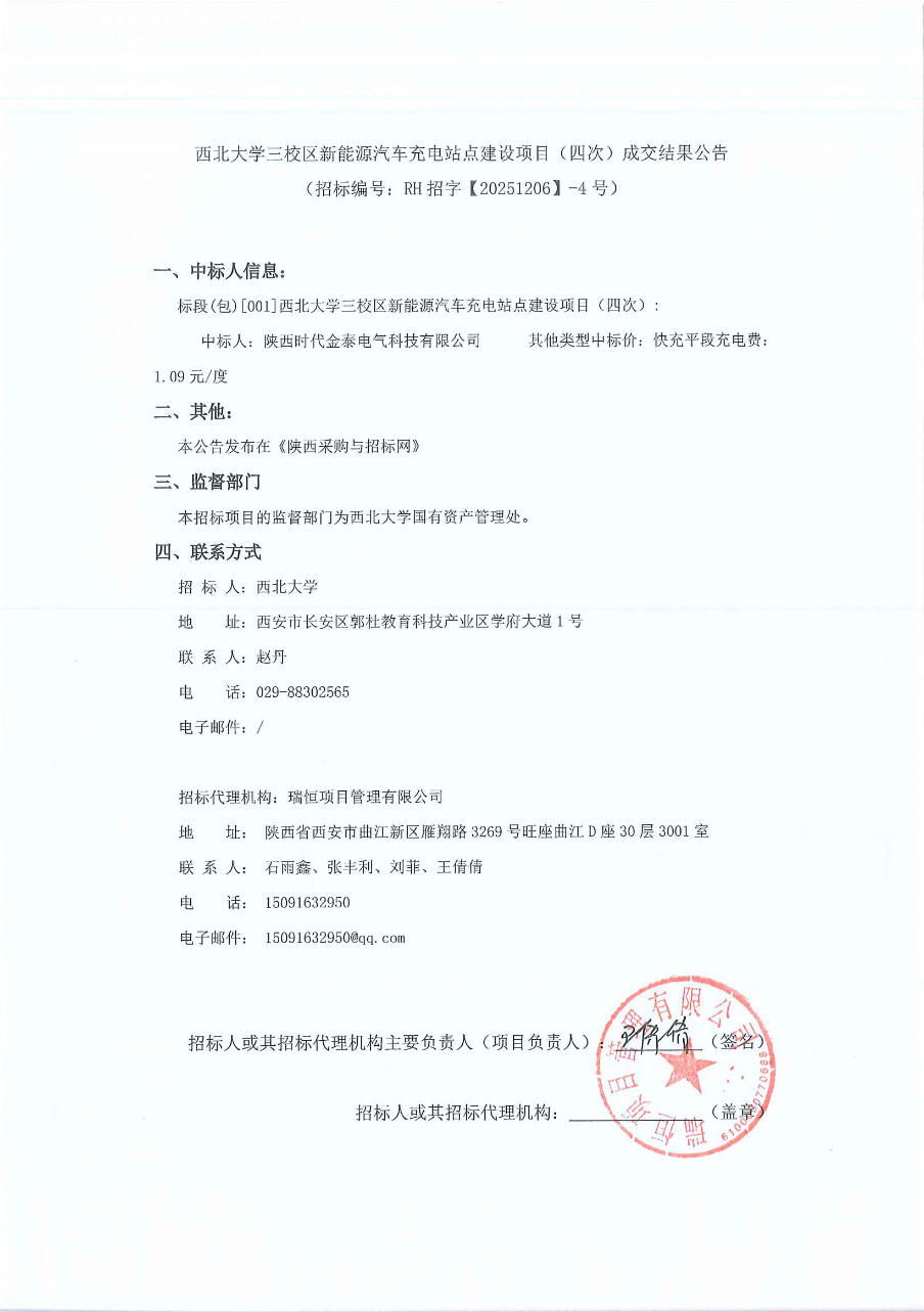 AC米兰中国官网三校区新能源汽车充电站点建设项目(四次)成交结果公告