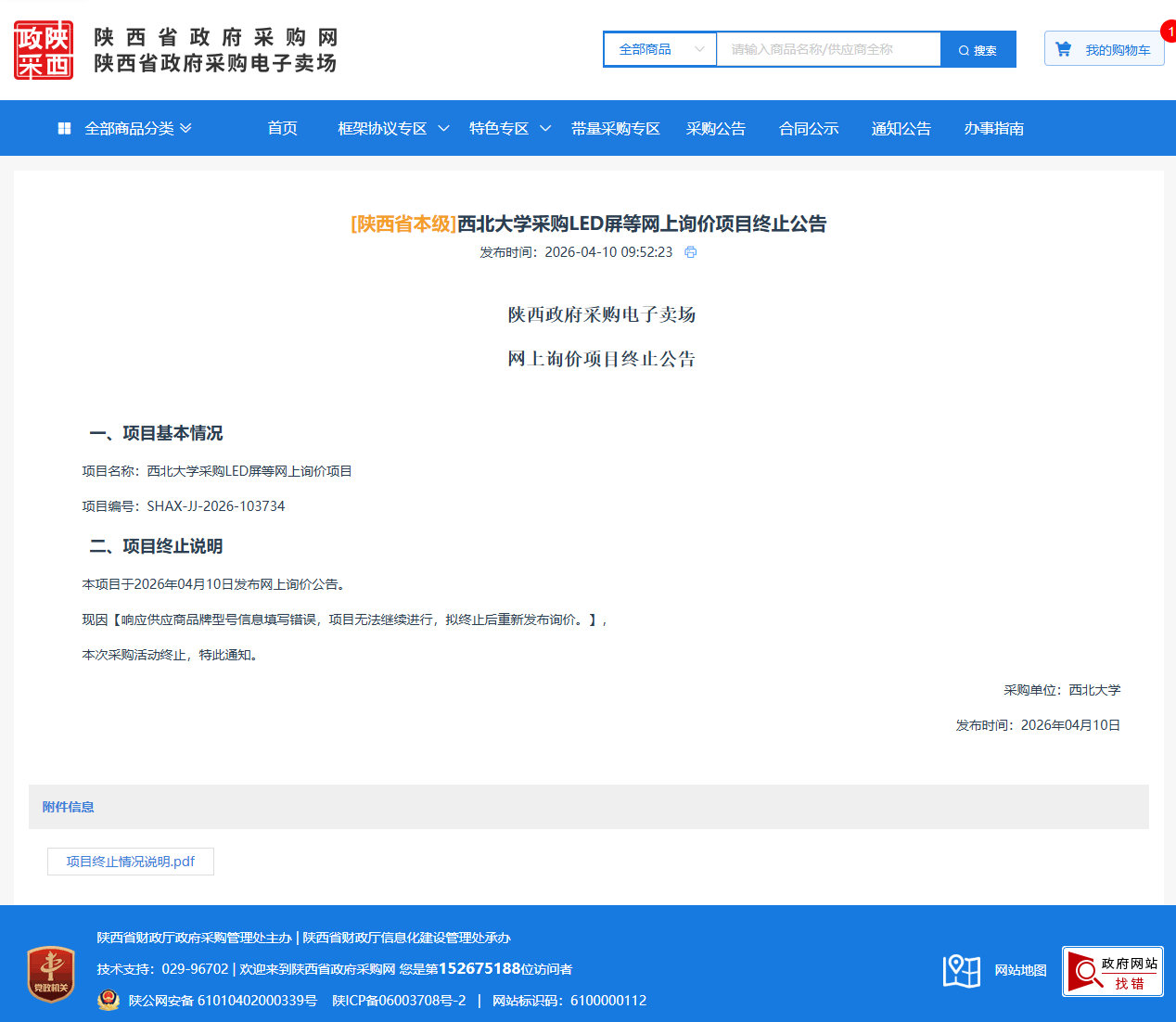 AC米兰中国官网采购LED屏等网上询价项目终止公告