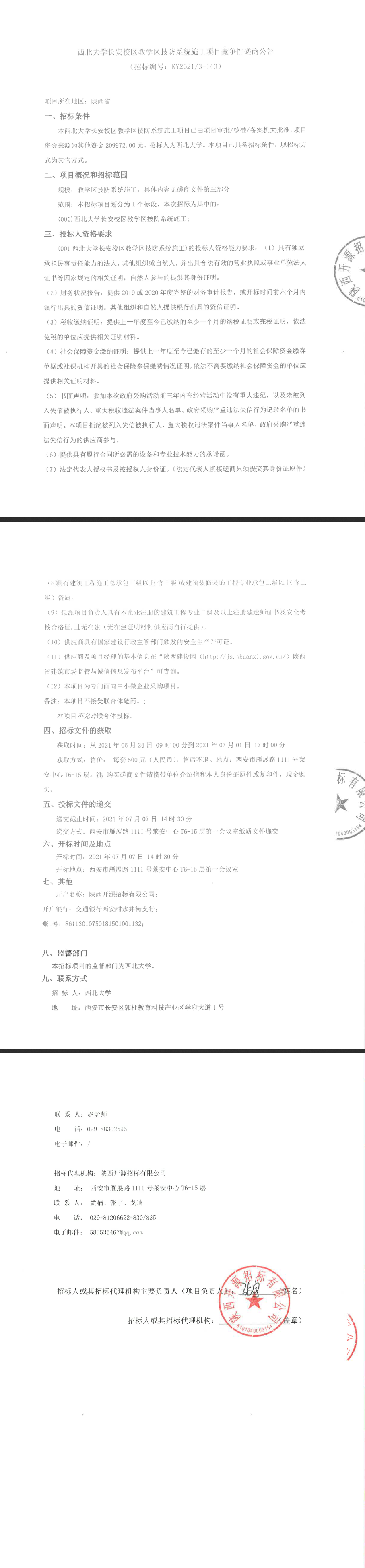 AC米兰中国官网长安校区教学区技防系统施工项目竞争性磋商公告