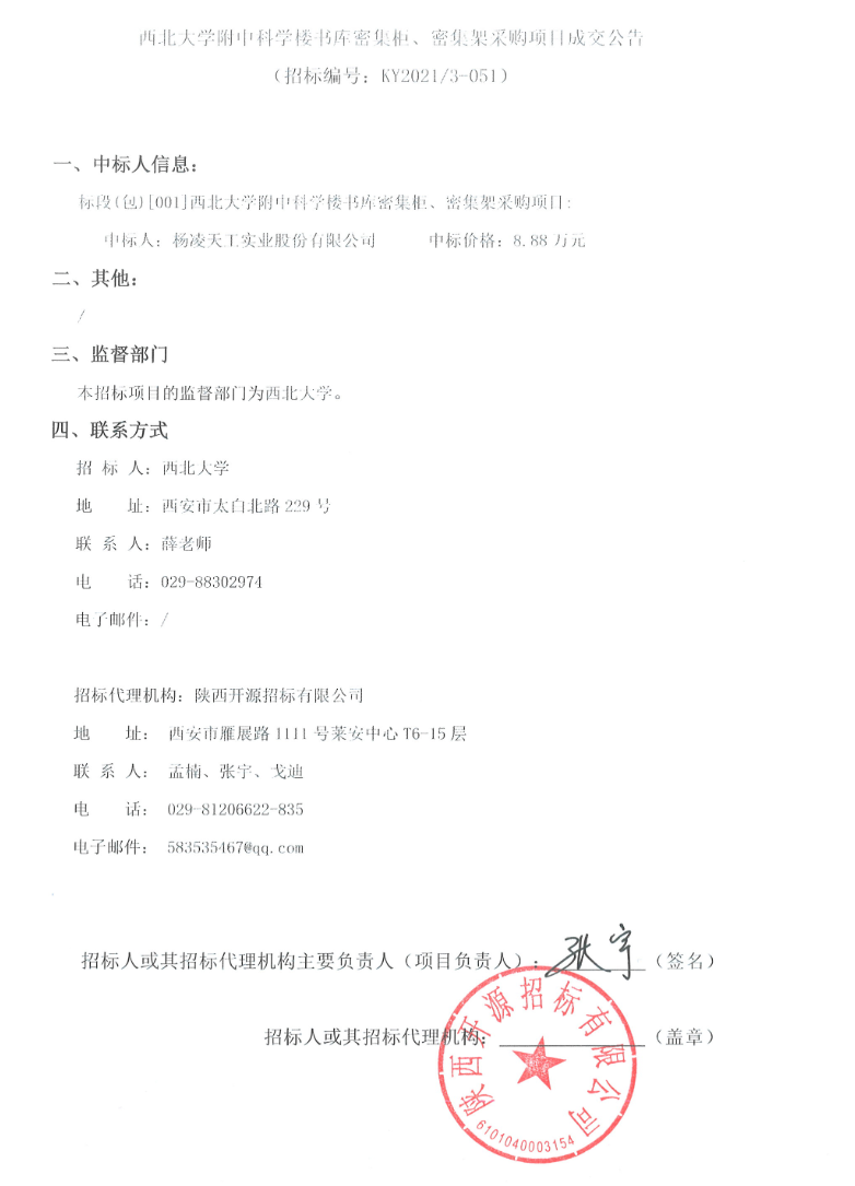 AC米兰中国官网附中科学楼书库密集柜、密集架采购项目成交公告