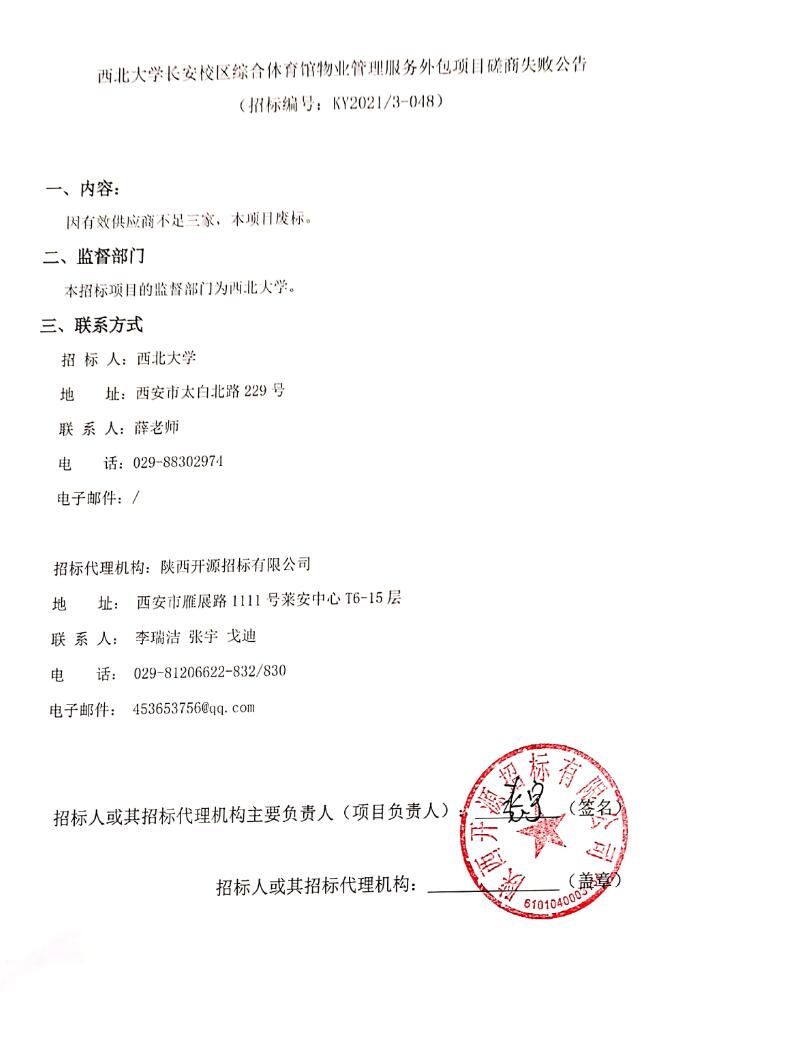 AC米兰中国官网长安校区综合体育馆物业管理服务外包项目磋商失败公告