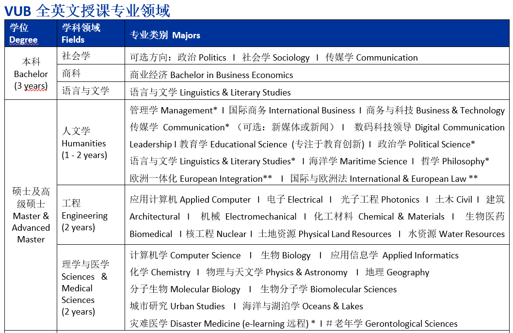 学生2026年9月份赴VUB完成一年制/两年制硕士学习,成绩合格者可获VUB硕士学位证书。(申请时可用学校开具的在读证明,如果被录取需要在大四毕业后向VUB提交本科学位公证件。)