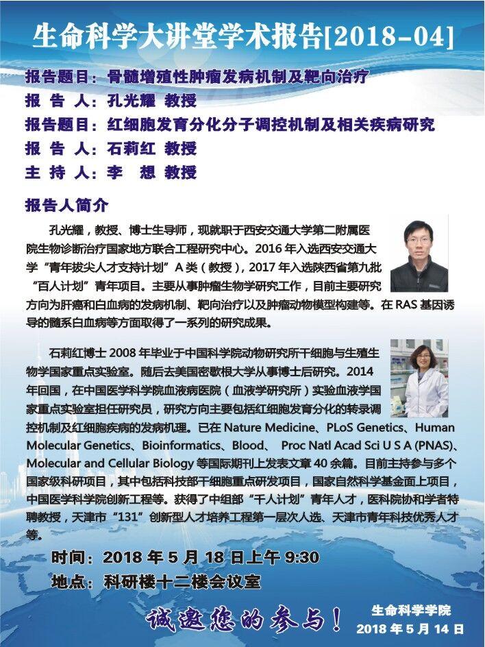 生命科学大讲堂学术报告【2018-05】