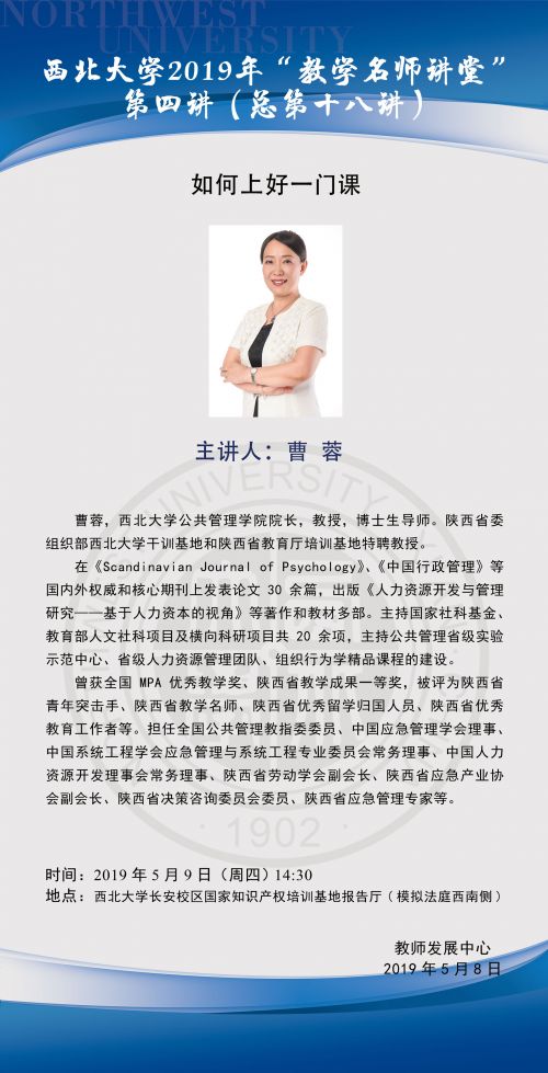 2019年教学名师讲堂第四讲 - 如何上好一门课