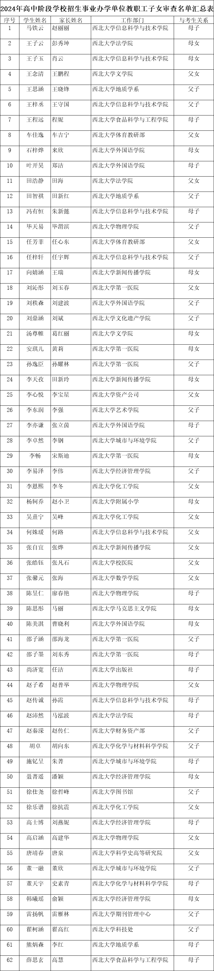 根据市、区教育局通知及要求,AC米兰官网于2024年5月6日开展2024年高中阶段学校招生AC米兰中国官网正式事业编制的教职工直系初中应届毕业子女审查工作。经大学人力资源部门、纪检部门审核,通过名单如下(按学生姓氏笔画数排序):