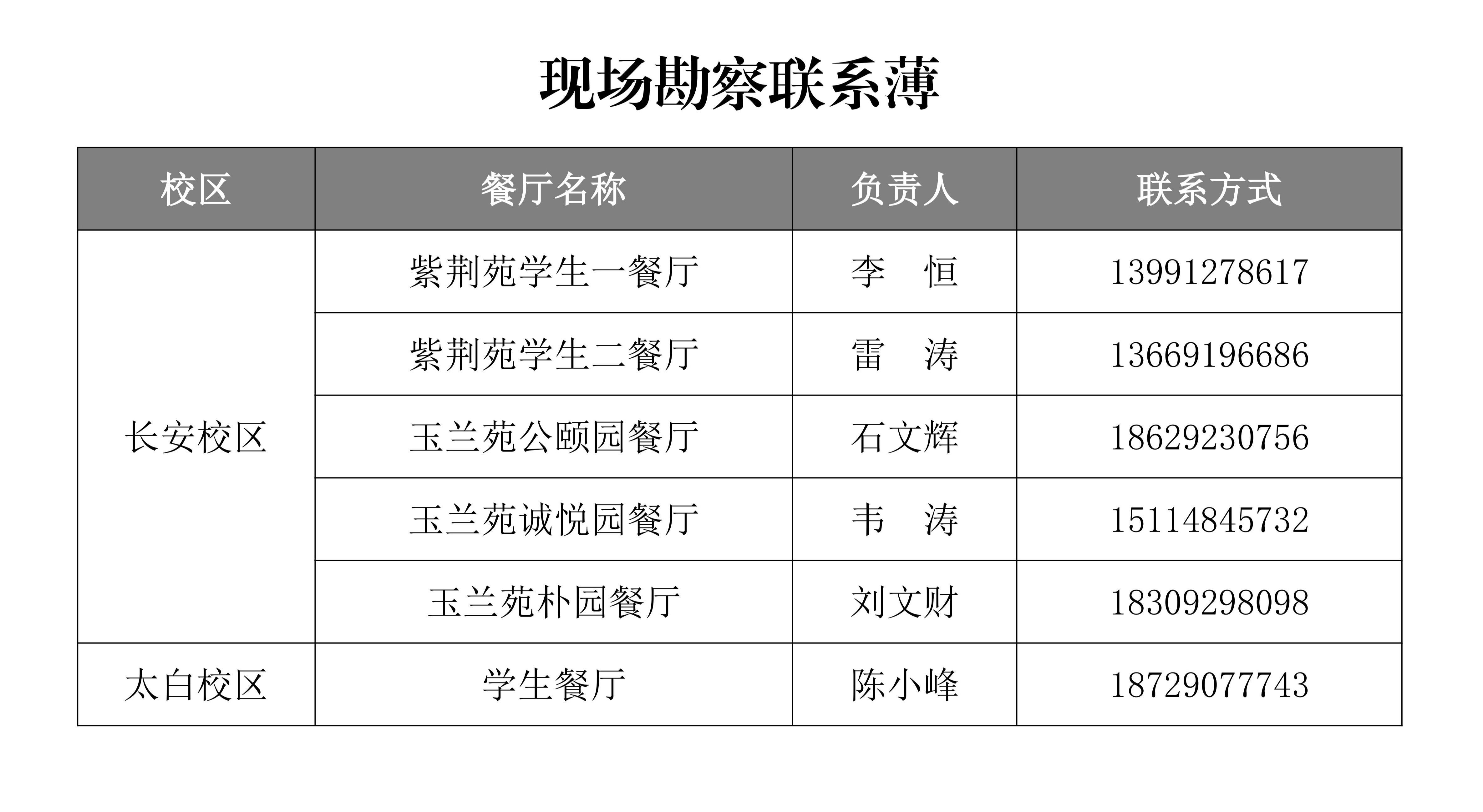 报名者请在报名前联系对餐厅进行现场勘察,联系方式如下: