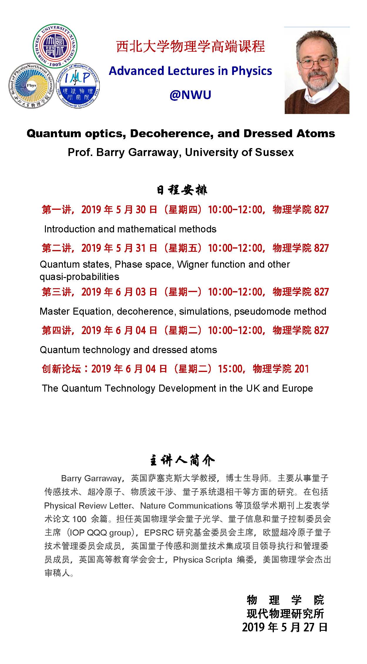 AC米兰中国官网物理学高端课程--Quantum optics, Decoherence, and Dressed Atoms