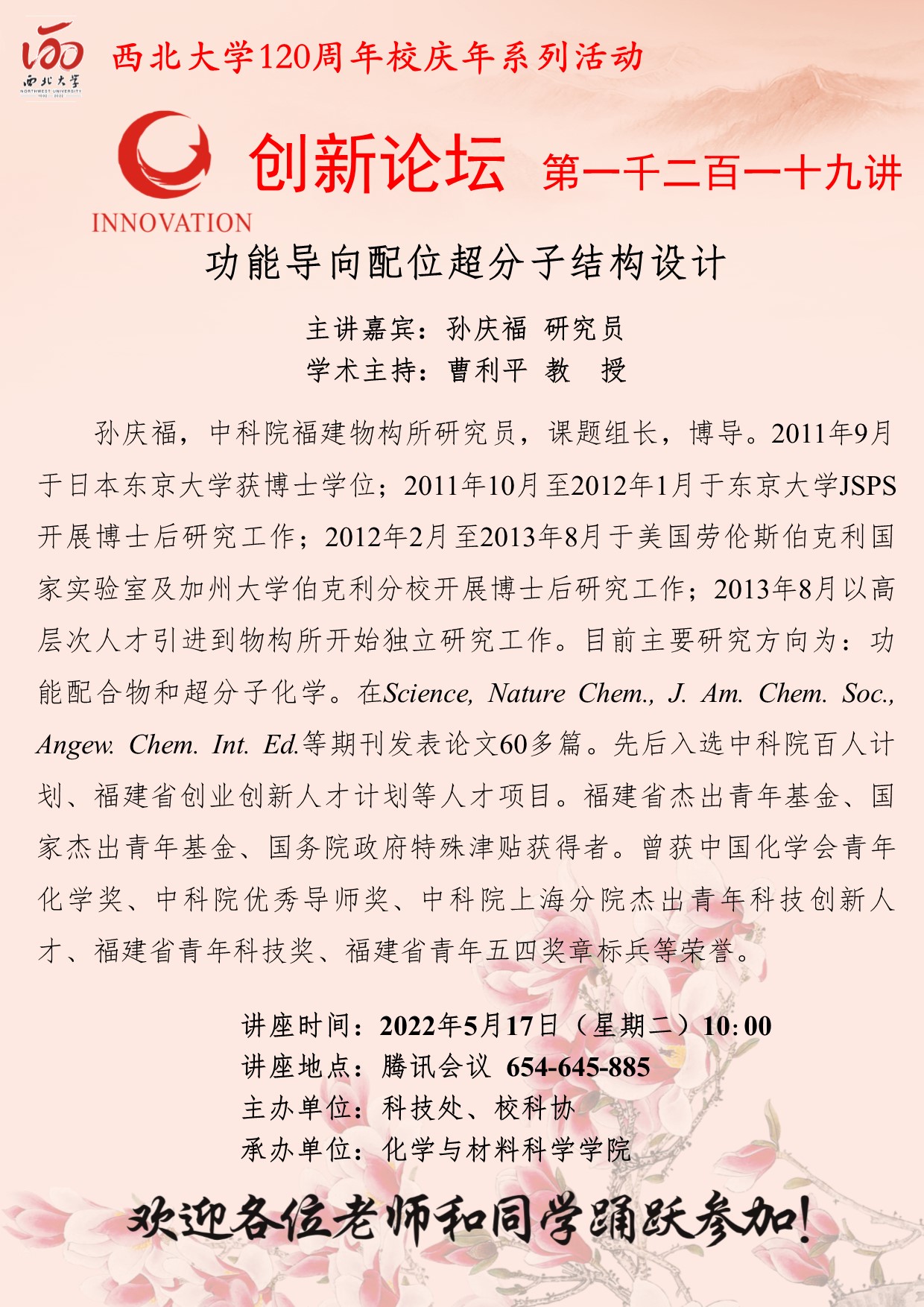 上一篇:AC米兰中国官网创新论坛第一千二百二十讲暨120周年校庆年系列活动:杯芳烃—从大环受体到生物医用超分子材料