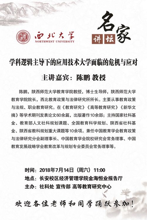 讲座题目:学科逻辑主导下的应用技术大学面临的危机与应对