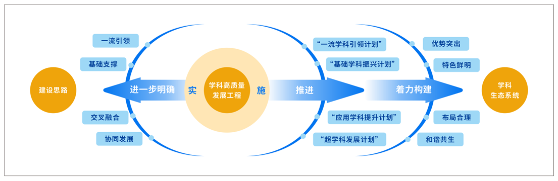 ——学科交叉融合顶层设计基本形成。按照“需求导向、任务驱动,改革创新、协同发力,强化统筹、优化结构”思路,研究制定关于促进学科交叉融合实施意见,部署分层分类建设、推进重大项目、构建交叉育人体系、组建学科团队、搭建支撑平台、建设“实验区”等六大重点任务,着力探索学科融合发展新机制,有规划、有组织、分步骤推动跨单位、跨学科的人才培养和协同创新,构建开放协调、可持续发展的一流学科生态体系。